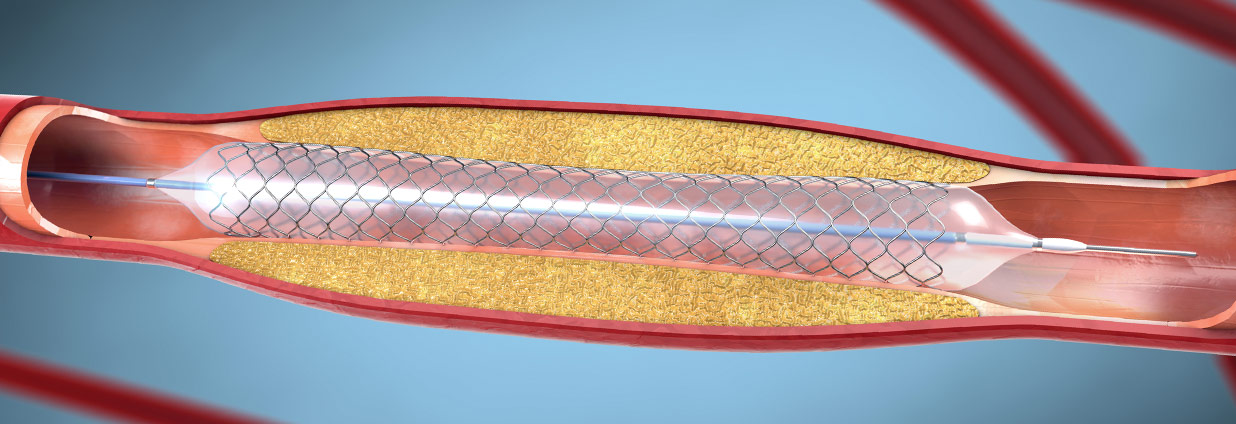 A small metal coil or tube is placed in an artery to provide support to a weakened artery. Coronary stents are frequently used in conjunction with balloon angioplasty procedures. There are two types of stents: bare metal and drug-eluting.
